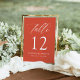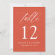 Ta med dig en liten elegans och värme till bröllop med våra kort för bordsnummer av elegant, med vacker vit kalligrafi på riken Verona-orangens bakgrund. Denna moderna och chic utformning tillför färg ett dynamiskt popup, skapar perfekten för bröllop under vilken säsong som helst, från romantiska vår-evenemang till mysiga höstfirande. Anpassa varje kort med ditt namn- och bröllop-datum för en unik och meningsfull detalj som kommer att glädja dina gäster. Genom att kombinera både stil och praktisk användning kan du ordna sittplatsen med de här bordsnumren samtidigt som du får ett fantastiskt dekorativt inslag till bröllopsdagen. Lägg till varje bordsnummer i kundvagnen för att beställa och checka ut när du avslutar.