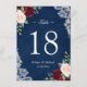 Bordsnumret Red Blommigt Navy Blue Bröllop