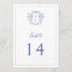 Vapenskölden ReEmergency Blue Monogram, bröllop bordsnumret. Vintagen inspirerade Baroque Stil Vapensköld. Funktioner, elegant och klassblå typografi stil-blandning av skript och fet text. Observera att bordsnumren måste beställas individuellt.