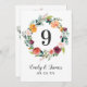 Rustiska romantiska kort för bordsnummer i stil bröllop har ett nummer som är inramat av en sommar- och sjunkfärgad andedräkt med vackra ro, dahlier, peonblommor och grönska, i en fantastisk höstpalett med burgudrött, gyllene gult, persikofärgad orange, blommigt och nyans av rosa.