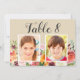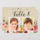 Bordsnumren har bilder av bruden och trimmen vid en ålder som motsvarar bordsnumret. Anpassa: skriv in bordsnumret genom att klicka på "ändra" med standardbilderna för att ladda upp dina egna digitala eller skannade foton och lägga till det enskilda bordsnumret på kundvagnen. Upprepa för alla bordsnummer du behöver. Kortet innehåller en neutralt beige bakgrund färg med mörk grått-text och en rustik blommigt vattenfärgsdesign med vackra ro, dahlier, persiljor och grönska i en fantastisk sommar- eller höstpalett med burgröd, gyllene gult, persikofärgad orange, rosa och gröntens nyanser.