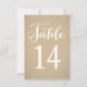 Två sidiga bordsnummer i bröllop har "Bord" i charmerande, vitt skript med nummer som kan vara personlig, och en bakgrund med ett pappert texturerat utseende med strålande kraftbrunt. Anpassa och lägg till varje nummer som du behöver i din kundvagn.