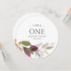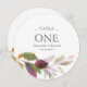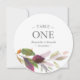Rustik vattenfärgsgrön bordsnummer i ett unikt runda format ramar med gräns i fallblad i plommonnyans, lila, bränd orange och grönt över en skarp vit bakgrund. Teckensnittet anges i modern sans serif- och skripttypografi. Perfekt för höstträdgårdstemat bröllop. Om du vill se modernare utformning av bordsnumret för mottagning med löv går du till VG Inbjudan på Zazzle