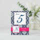 Bordsnumret shock rosa Navy Damask Wedding Vykort