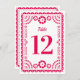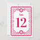 Det här vackra bordsnumret med papel picado inspirerade bröllop har ett ornat ram i färglöst shock rosa på vit bakgrund och festiv typografi. Den här eleganten är ändå ett fantastiskt val för en latinsk bröllop, en repetitionsmiddag, förlovningsfest eller möhippa. Se samordna objekt i samlingen..