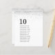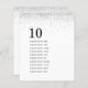 En storlek 4,5 x 5,6-tums halvblank vikt på 110 lbs, som är av samma tjocklek som ett vykort, med EN per lakan. Bordsnumret silver Glitter Guest Namn. Enkel contemporary stil med bordsnumret större i gemener i snyggt och namn för bord under och mycket tomt utrymme med gräns i glitter i i silver. Anpassa texten till dina egna detaljer. Samma design finns på baksidan
