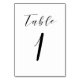 Bordsnummer 1-kort för elegant för bröllopsfester. Kortet bröllop bord har ett vackert svart minimalistiskt manus. Andra nummer är tillgängliga. Designad av Blackberry Boulevard.