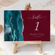 Bordsnumret Teal Silver Agate Burgundy Bröllop Bordsnummer