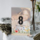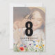 Det här charmerande bordsnumret tillför bröllop bord ett inslag av naturskönhet. Det här tecknet skapar en känsla av romantik och elegans med en delikat vattenfärgsbild av en vildblomma. Teckensnittet för elegant och den mjuka färg-paletten kompletterar blommigtens utformning och skapar det ett val av perfekt för vår och sommar-bröllop.