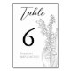 Minimala moderna kalligrafkort med en lilja av dalen-silhuettillustrationen med bordsnummer för en möhippa.