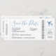 Boardingkortet sparar datummeddelandet om inbjudan till ett målbröllop- eller resetema-mottagning med en sofistikerad logotyp för det blå flygplanet, professionellt designad typografi och utrymme för mycket information om gästresor och mottagningsdetaljer i hemmet på baksidan. Varje bit av detta flygplan biljett kan spara datumkortet och du kan anpassa det efter ditt val av ordalydelse, typsnitt och färg - klicka bara på "anpassa ytterligare" och klicka på lagrar om du vill ändra. Flygplansbildsfyllningen färger kan ändras så att den stämmer överens med ditt äventyr- eller strandbröllop färg. En idé om du har en stor mängd resa-roligt som du vill att dina gäster ska ta emot när du sparar datumet är att beställa två separata boardingkort - en med enkel och elegant spara datum meddelande-design och en annan med ALL resa agent, utflykt, hotell, reseuppgifter och andra bröllop-relaterade evenemang som du är värd för. På så sätt finns det gott om plats i fodral, så man använder inte en bröllop webbplats. Se bara till att ta med din kontaktinformation i fodral så att dina vänner och din familj har några frågor.
