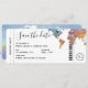 Den här inbjudan från bröllop spara datum ser ut som ett boardingkort, med din "flyginformation", vilket gör det till en unik och modern inbjudan som säkert får en reaktion. Anpassa texten och njut av din respiterade bröllop. Det här är perfekt för destinationsbröllopet.