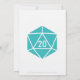 Ge upp en touch av nördigt kul på din fest med denna bröllopsinbjudan med en ljus turkos kant på höger sida, dekorerad med ett mönster av tjugosidiga tärningar. Den vänstra sidan av kortet har gott om utrymme för alla detaljer för ditt speciella evenemang med en exempeltext som kan anpassas efter dina behov. En stor d20 i turkos avslutar på baksidan för att skapa en bra slutnot.