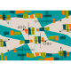 Mitt--Århundrade moderna atom- inspirerade abstrakt bordstabletter i kricka, orange och grönt.