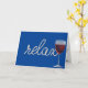 Red vin i täckglas med ord RELAX i rep med blå bläck för födelsedag. Bakgrund färg kan redigeras.