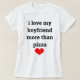 Med rött hjärta mönster, med ett lustigt citat "i kärlek är min pojkvän mer än pizza"! Det här gör en coola på Alla hjärtans dag, pojkväns födelsedag eller tillfälle du gillar! Du kan redigera texten för att anpassa den som du vill.