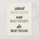 Minimal och enkel design. "Börja där du är. Använda vad du har. Gör vad du kan." motiveringscitat