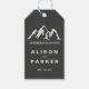 Den moderna utformningen av elegant bröllop, med trendig typsnitt och bergsbelysning, äventyr börjar nu!