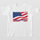 Wavy American flag with bold red and black stripes and blue stars. “Born in the USA” statement for patriotic pride. Great for Independence Day, veterans, and USA supporters.