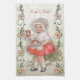 Barn i vintagen som bär ett hårnät och håller en tallrik med färska bakade julkakor. Unik vinodling gräns med cookie-accenter. Roligtens presentidé för kocken eller bagaren. Du kan anpassa texten.
