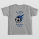 Born för att spela fotboll som tvingats till skolfotboll, blå skrift, blå flammor ut ur fotbollen