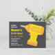 Den här inbjudan levereras med en gult och orange leksak över en svart grått-bakgrund. Underbarare för barn, särskilt pojkar som kärlek handyman verktyg och som vill bygga och bygga sin egen sak.Anpassa enkelt med dina party-uppgifter.