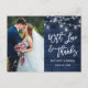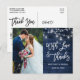 Modern Borsta Skrift, Rustika Blå Trä- och Strängljus med Murar Krukor, Med Kärlek och Tack Bröllopsfoto Tack Kort