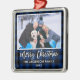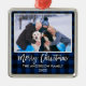 Modernt Borsta Skript, Rustik Blå Rutig God Jul Familj Foto Ornament