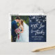 Modern Borsta Skript, Rustika Blå Trä och Strängljus med Murade Krukor, Med Kärlek och Tack Bröllopsfoto Tack Kort