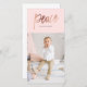 Denna säsongsbetonade julkortdesign har en modern rosafärgad bakgrund med en handskriven teckensnitt som läser "fred" i en rosa guld falsk folie struktur.