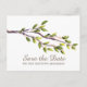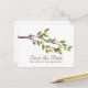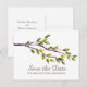 Enkel borstad grenar Spara datum postkort med en akvarellillustration av vackra träds grenar med livfulla och frodiga gröna blad och ett par gula och blå fåglar. Detta klassiska och moderna borstade akvarell utseende spara datum postkort kan enkelt anpassas med din bröllopsinformation. För fler anpassningsalternativ, klicka på Anpassa den knappen.