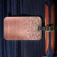 Roséguld - pastellrosa falsk folie metallisk glans glitter borstat metall monogramnamn och initial bagage- eller resväskemärke. Detta gör den perfekta söt 16-årspresenten, bröllop, brudshow, årsdag, baby shower eller möhippa present till någon som älskar glamourösa lyx och chic stilar.