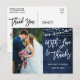 Modern Borststil, Rustik Blå Trä och Strängljus, Med Kärlek och Tack Bröllopsfoto Tack Kort