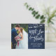 Borste Script Rustik Blå Trä Kärlek Tack Bröllop Vykort