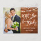 Modern Borst Skrift, Rustikt Trä och Strängljus, Med Kärlek och Tacksamhet Bröllopsfoto Tack Kort