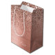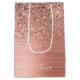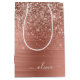 Roséguld - Blush Rosa Falsk Folie Metallisk Glitter Borstmetall Monogram Namn Presentpåse. Detta gör den perfekta söta 16-års födelsedag, bröllop, bröllopsfest, årsdag, baby shower eller möhippa presentpåse för någon som älskar glamour lyx och chic stilar.