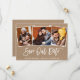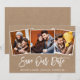 Modern Borstskrift Rustik Trä Par 3 Foto Spara Vår Datum Förlovningsannons Kraftkort