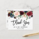 Modern Borstskrift Burgundy Blå Blommig Bröllop Tack Kort