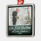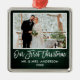 Modern Borstskrift, Rustik Grön Trä Vårt Första Jul Bröllops Foto Ornament