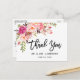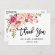 Borstskrift Rosa Blommig Bröllop Tack Vykort