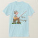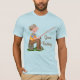 Människan slappnar på träd med sin fiskekapel, mask, och betesburk. Texten säger Borta fiske, men du kan anpassa dig för att säga vad du vill. Vatten och blå himmel har en bakgrund i vissa frågor.