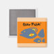 Två stora blåa fiskar som simmar ut i havet accentuerar denna ljusa magnet. En påminnelse om att det kanske är dags att börja fiska.
