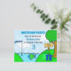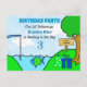 Cute grönt och blåfiske i sjö, "Borta fiske" var pojkens födelsedagsfest. Redigera bara informationen om namn, ålder och party i personaliseringsområdet!