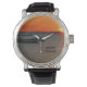 Den här handklockan, med det unika foto-ansikte och svarta läderbandet är en underbar gåva till ett pensionat, Fars dag, eller någon som fiskar i kärlek. Titta på ansikte är ett dramatiskt solnedgångsfoto med en levande orange himlar och en silhuett av en fiskebåt. Det står "Borta fiske" i texten, men det är lätt att ändra det. Det finns också hälsningskort och inbjudningar och andra presentartiklar i mönster. Alla Höger förbehållna © 2013 Alan & Marcia Socolik