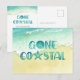 Meddela att du har flyttat till en tropisk plats eller en strandplats med det här vykortet med den lustiga typografititeln BORTA COASTAL accentuerad med en sanddollar och stjärnfisk och vattenfärgsvåg på en strand på framsidan och ditt anpassningsbar-meddelande och nytt adress på baksidan. ASSISTANS: Om du vill ha hjälp med designändringar eller anpassning, ändra storlek på färg, flytta designen till en annan produkt eller om du vill samordna produkter kontaktar du designern INNAN ORDERING via Chattan Zazzle MESSAGE nedan eller e-post makeitaboutyoustore@gmail.com.