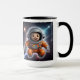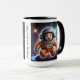 En viskartad astronaut i tecknaden flyter genom rymden och tiden och navigerar i ett kosmiskt äventyr. Den ljusa, prickade, färgad bakgrunden framkallar en känsla av viktlöshet och . "Ursprunglig bild genererades av Meta AI. AI skapade teckningar. Licensierad enligt CC BY-SA 4.0."