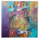 Major Arcana Måne.Mysterious allegorious contemporary-tavla .Colorful water-tavla with guld foil by Bulgan Lumini.c)Magic guld sparkles in bright teal,blue grönt ,gult färg.Blandat mediematerial med golden and silver foil .
