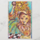 Major Arcana The Sol. Mysterious allegorical contemporary tavla .Colorful water-tavla with guld foil by Bulgan Lumini (c). Magiska gnistor i guld i ljusteal,blå grönt,gult färg.Blandad mediamålning med golden och silver folie.