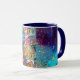 Major Arcana Måne.Mysterious allegorious contemporary-tavla .Colorful water-tavla with guld foil by Bulgan Lumini.c)Magic guld sparkles in bright teal,blue grönt ,gult färg.Blandat mediematerial med golden and silver foil .