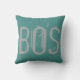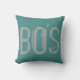 Dekorativ kudde har BOS - flygplatsförkortning för Logan Internationell Airport, Boston, MORSA. Grungy urban grått text på teoribakgrund
